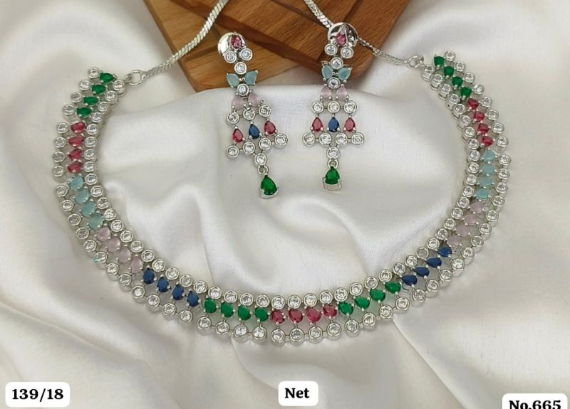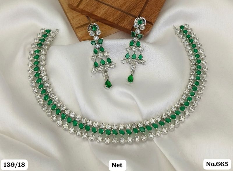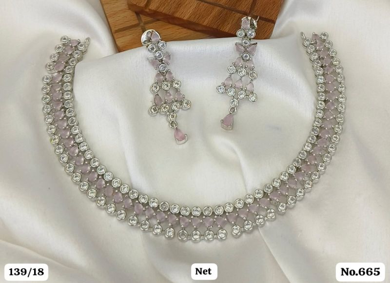Presenting the American Diamond Necklace Set, crafted with premium-grade simulated diamonds and polished brass base. This elegant set comes with a matching necklace and earrings, perfect for weddings, parties, and festive occasions. Lightweight yet durable, offering a sparkling finish and unique design for modern women.