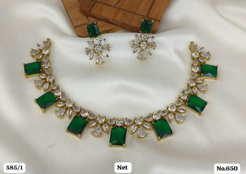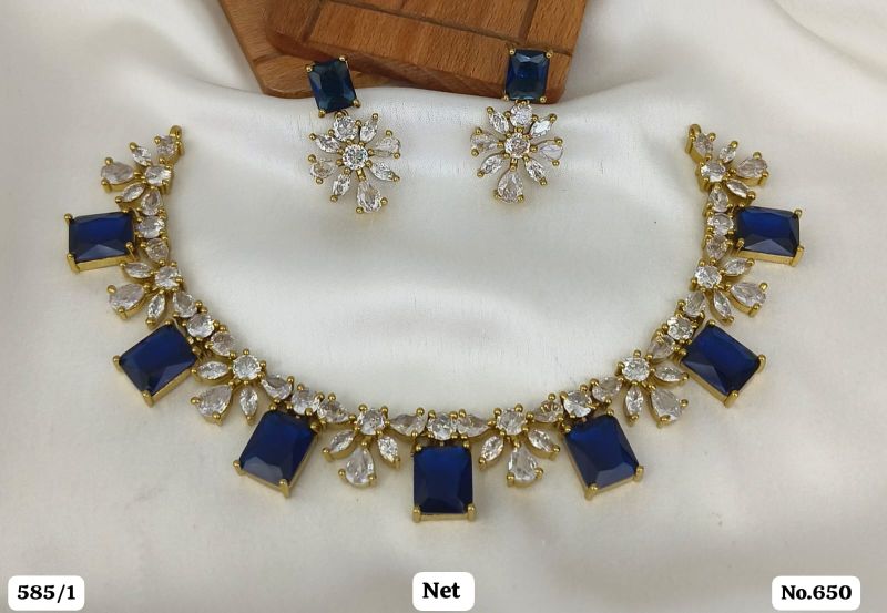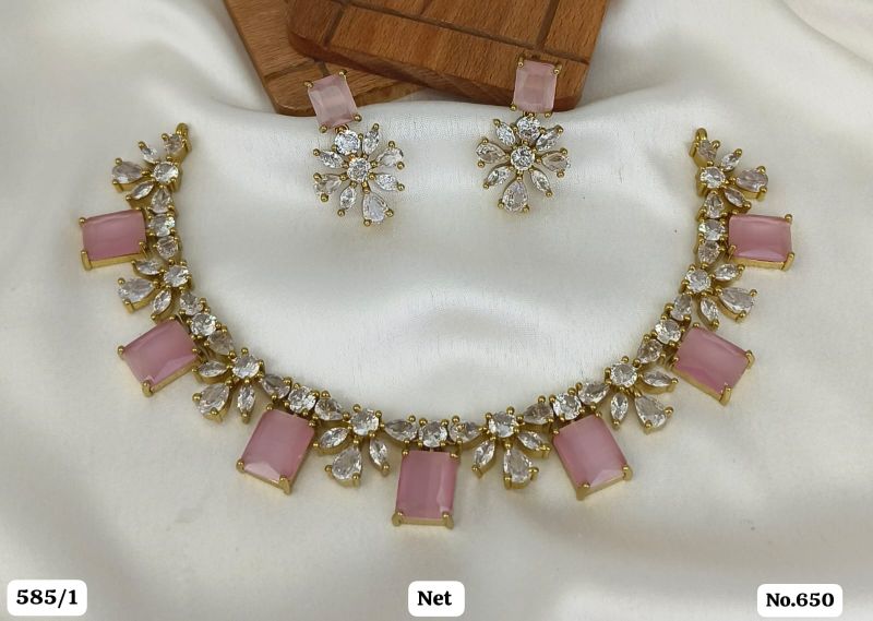 This premium imitation jewellery necklace set is crafted with a high-quality alloy base, sparkling American Diamond (CZ) stones, and long-lasting gold plating. The set includes a beautifully designed necklace with matching earrings, making it a perfect choice for both modern and traditional occasions.