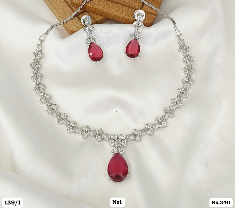 American Diamond Necklace Set with Earrings – Multi Color Range